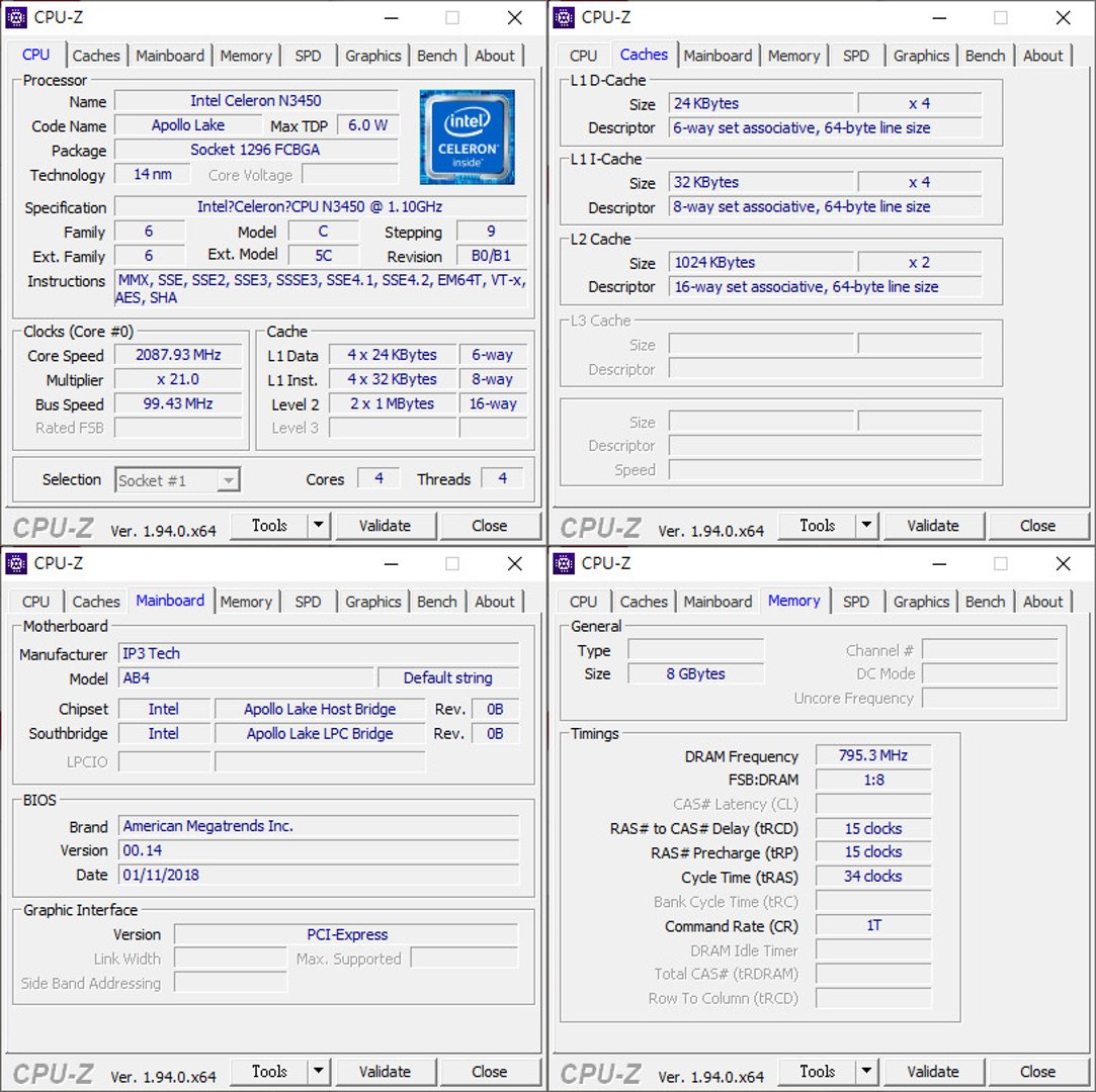 - 處理器:Intel Celeron N3450 (4C/4T) 1.1 ~2GHz