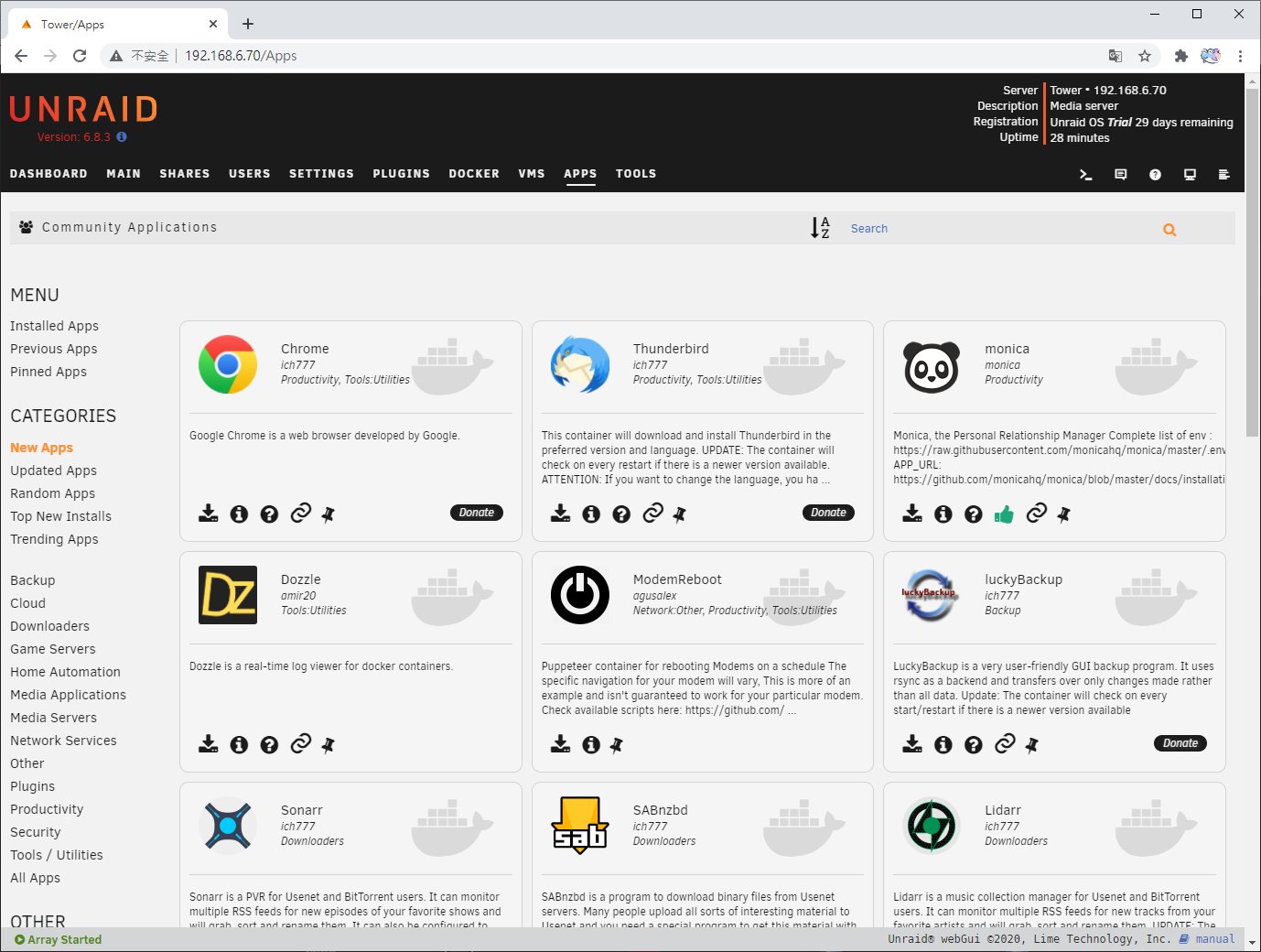 ▲ 用銳角雲拿來當簡易NAS伺服器也OK,圖為執行UNRAID的畫面