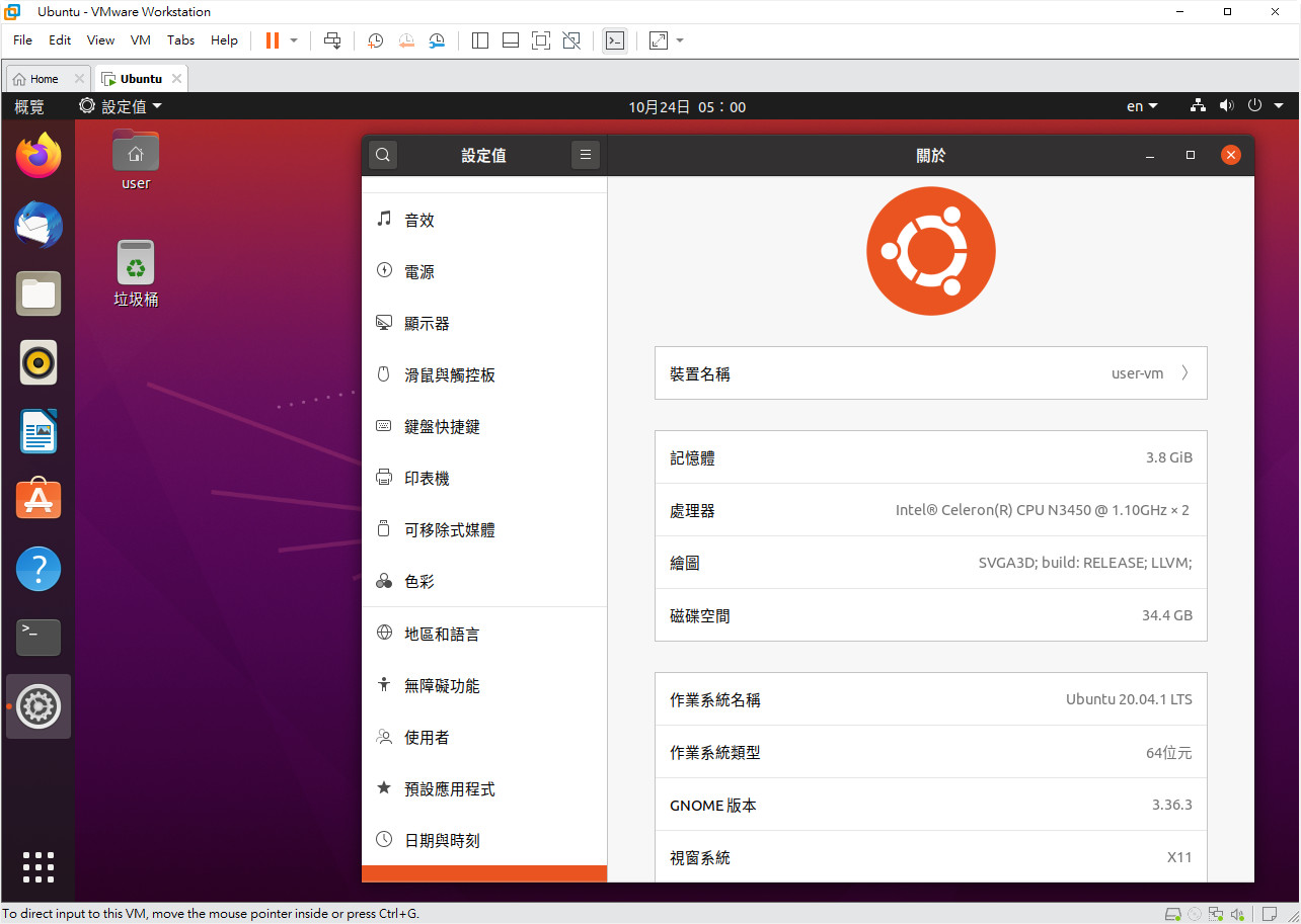 ▲ 以銳角雲執行VMware Workstation,在Windows下執行Ubuntu的虛擬機
