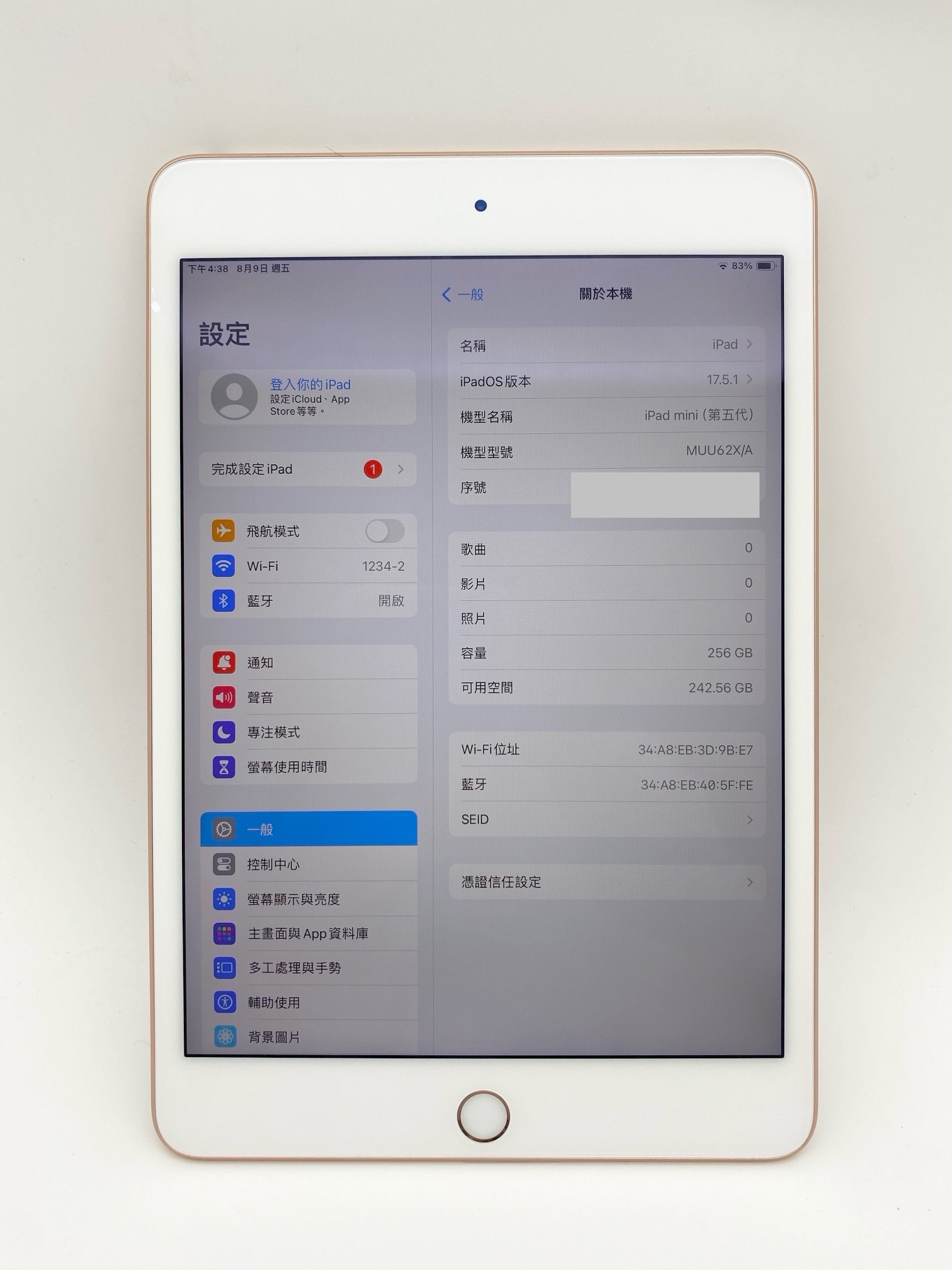 • 儲存裝置:Flash (iOS Device) 256GB