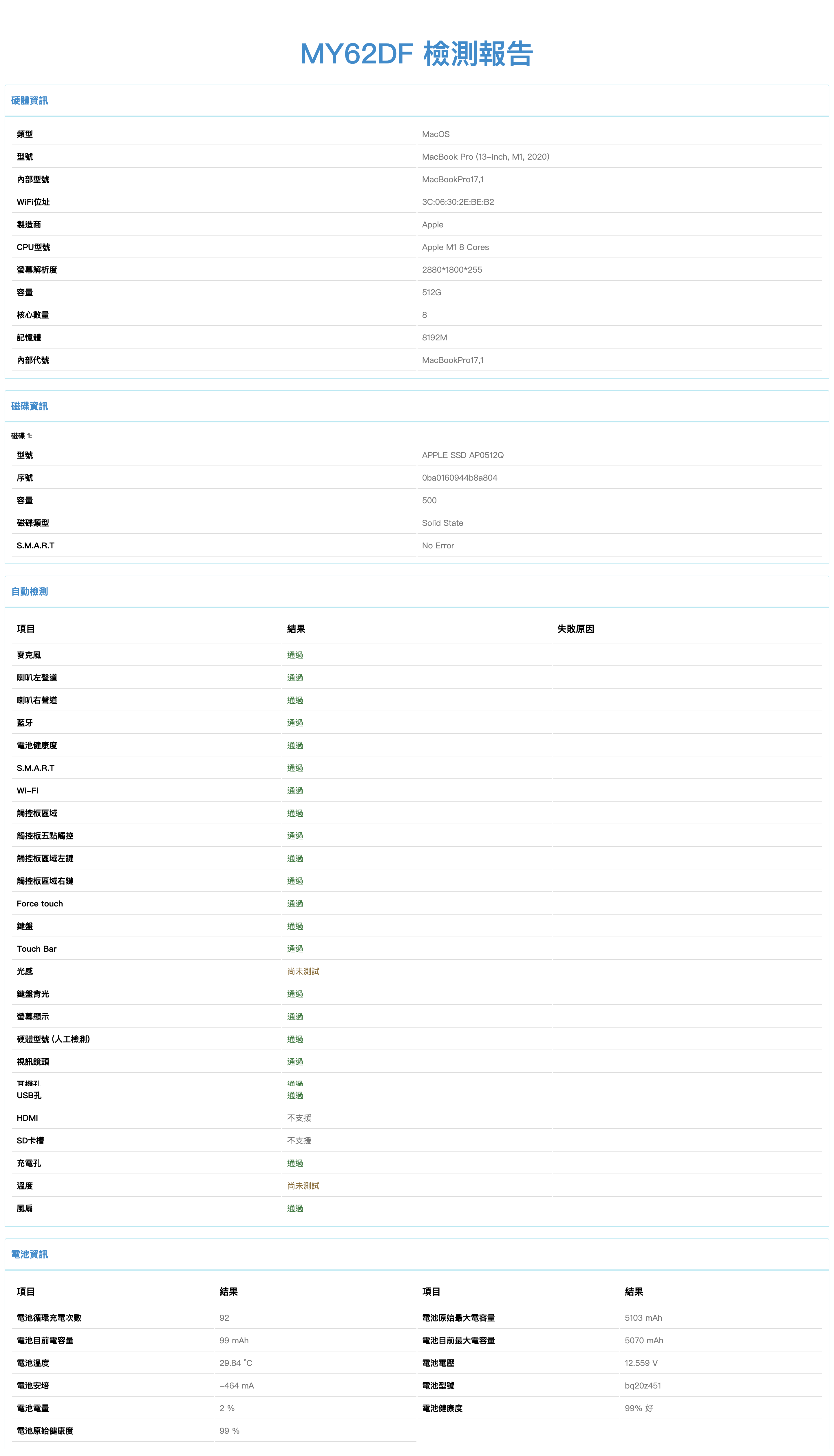 MacBook Pro(13 英寸,M1,2020 年) -技術規格